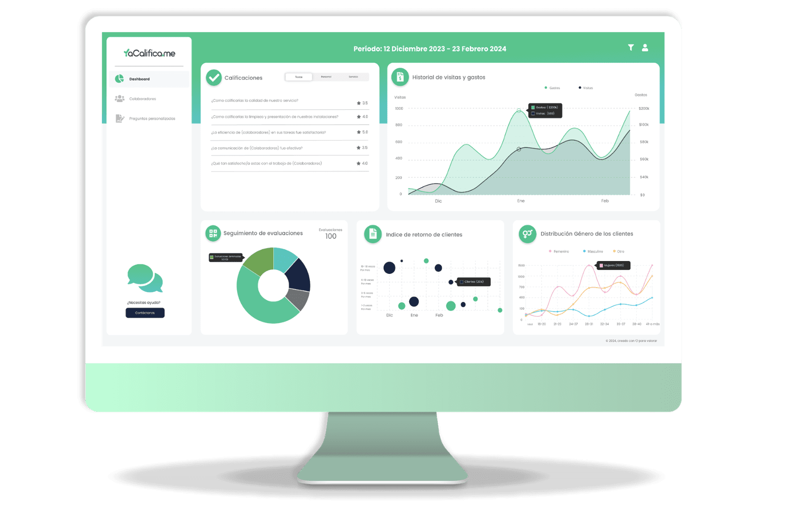 Dashboard donde se reflejaran los resultados de la evaluación, donde podrás crear estrategias para poder mejorar tu servicio.